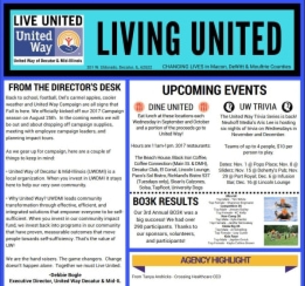 Article posted on October 23, 2025 • 0 min read September 2017 Edition M Article posted by morwebadmin Updated on Oct 23, 2025 Home Blog Share us on Table of Contents How to Apply Interested candidates should submit their resume and a cover letter detailing their qualifications and interest in the position to Debbie Bogle @ dbogle@uwdecatur.org or mail to: Apply Today United Way of Decatur and Mid-IllinoisAttn: Debbie Bogle201 West Eldorado St.Decatur, IL. 62522